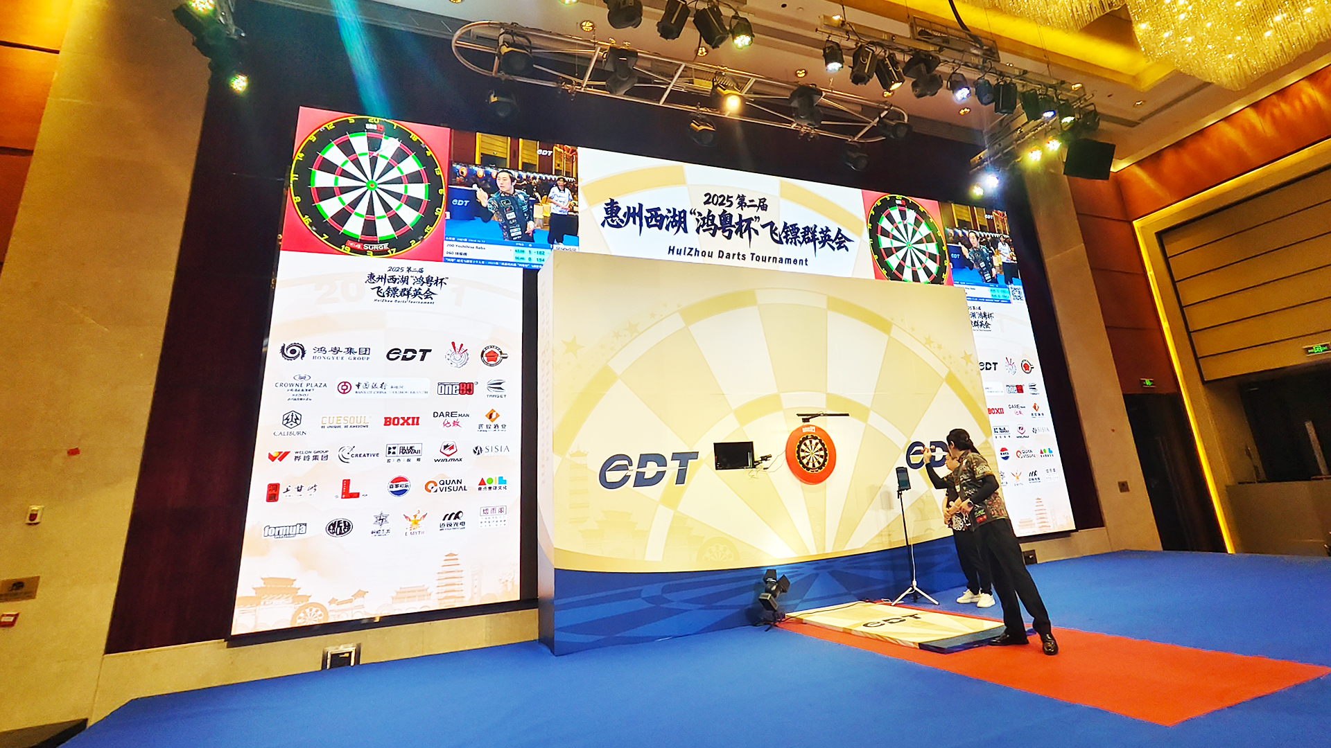 近千名飞镖爱好者齐聚皇冠假日酒店,见证群英会拉开帷幕。除了选手们的精彩对决,赛场的LED显示屏同样引人注目,成为现场比分、选手信息和精彩回放的绝佳载体。